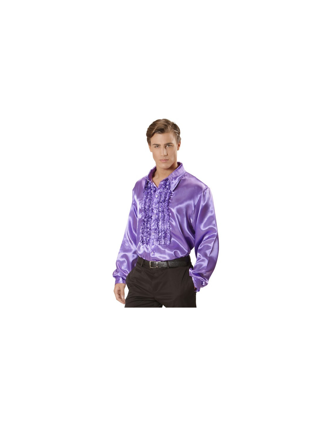 Incluye: Camisa con Volantes en Raso de color Violeta.