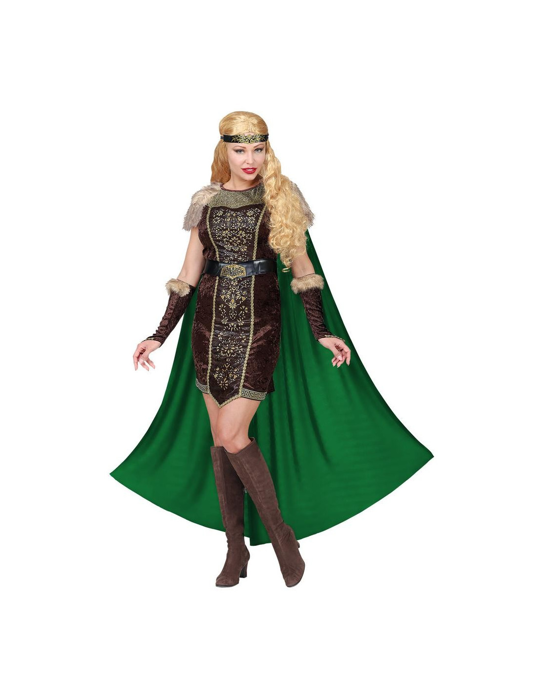 Incluye: Vestido con Capa, Cinturón, Brazaletes y Lazo para la cabeza.
