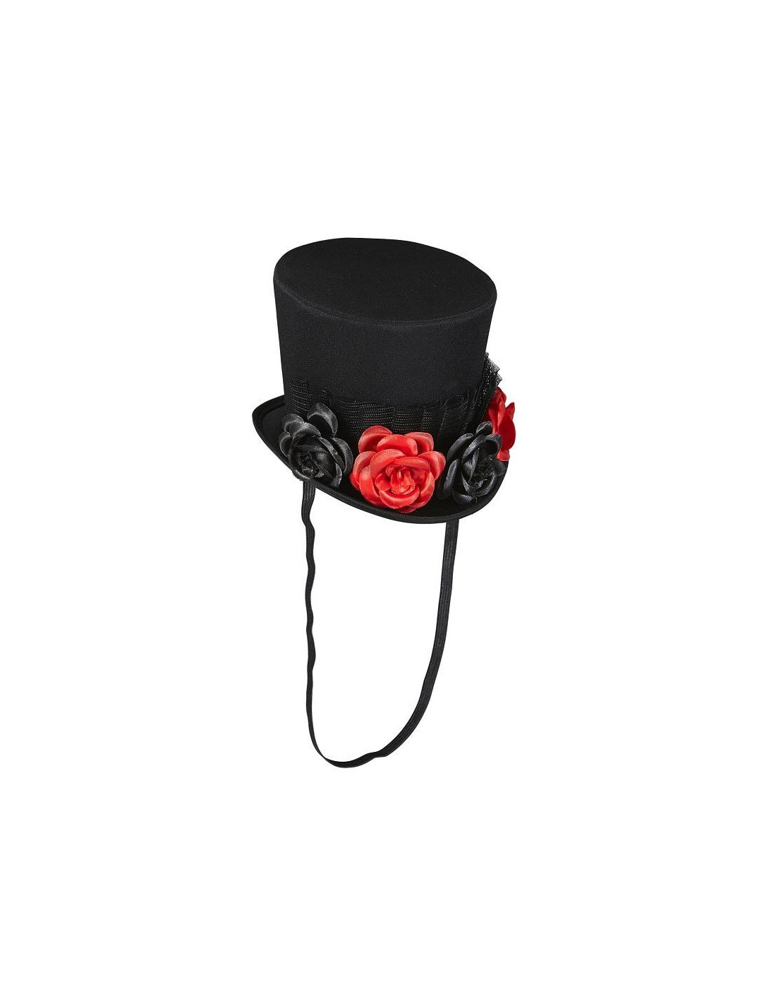 Incluye: Mini Sombrero de color Negro con Tul y 4 Rosas.